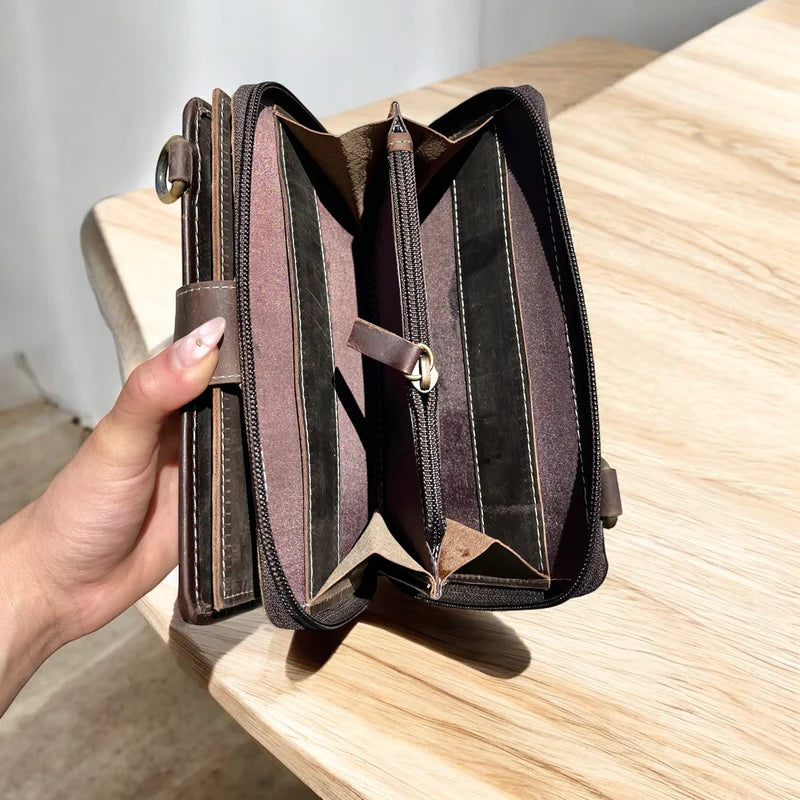 Designed for style and everyday ease, this crossbody wallet features a built-in mirror and thoughtful storage to keep you organized on the go. A chic, functional piece made for effortless wear from day to night.